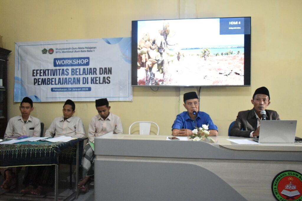 Pada awal semester genap sekaligus awal tahun baru 2026, Musyawarah Guru Mata Pelajaran (MGMP) MTs Mambaul Ulum Bata-Bata 1 sukses menyelenggarakan workshop pendidikan dengan tema “Efektivitas Belajar dan Pembelajaran di dalam Kelas”. Kegiatan ini dilaksanakan pada hari Ahad, 04 Januari 2026, bertempat di Ruang Multimedia MTs Mambaul Ulum Bata-Bata 1 dan diikuti oleh para guru dengan penuh antusias.
